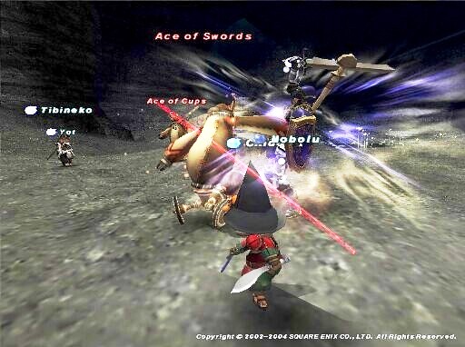 歌無し2人がいる所へ入れてもらえました。 歌持っている前衛が、それほどいないということです。 構成は、ナイト、シーフ、モンク(私)、詩人、白、黒でした。 最低が私のレベル70、あとは72-75です。