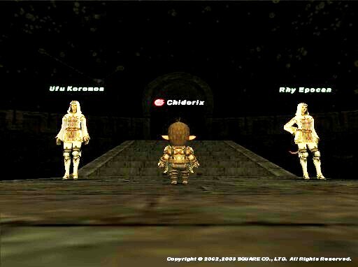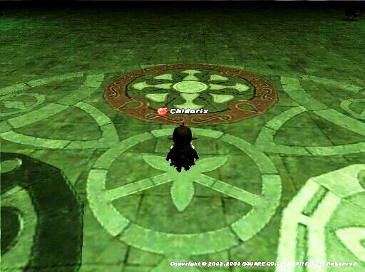これが、白、赤、黒の輪の上に、白魔、黒魔、赤魔が立つと開く扉のしかけです。 それぞれの魔道士は、リンクシェルのメンバーにお願いしました。
