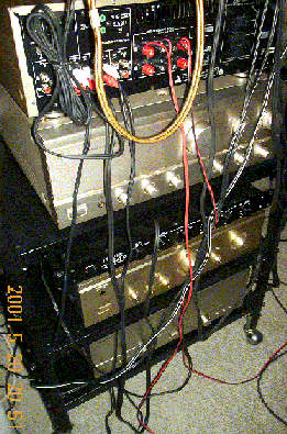 アンプのラックを、背面から見ると、こんな感じです。プリアンプの出力が大きいので、ケーブルは高いものを使う意味がありません。