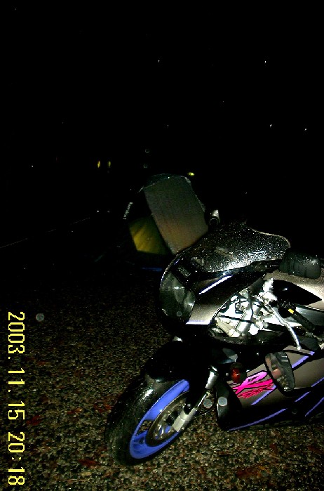山合いなんで、深黒までになります。右にボやっと見えているのがテント、左のオレンジは、バイクの反射鏡です。