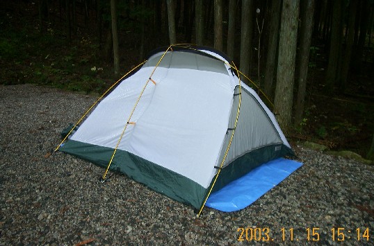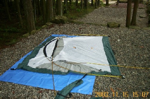 テント(ヨーレイカ:スカイライト3)建て始めたら雨が、、