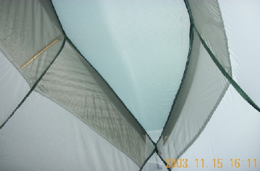 このテント、天井の部分は、巨大なメッシュのベンチレーターです。