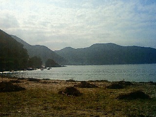 結局夜中に寒くなって、カッパを着て寝たら、熟睡してしましました。 日の出の写真を撮ってから、なんと12時まで泳ぎました。 波があるので、楽しいのと、波打ち際は、やはり涼しいのです。 13時に荷物をバイクに積み終わり、日進市へ向かいました。 |