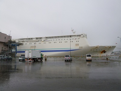 帰省ルートを実家の更埴ICで降りずに、信越道に乗り継ぎ、新潟港へ向かいました。 フェリーターミナルは、信濃川河口です。 場所が判らず(佐渡へ渡るほうへ行ってしまった)電話番号を調べてもらいナビで、なんとかたどり着きました。 早めに着いたつもりが、出航一時間前と、丁度良い時間になっていました。 大阪から日進市までは168km、日進市-新潟港までは487kmでした。 日進市までの高速バスで寝たとはいえ、500km近くを徹夜で走ったのは、初めてではなかったでしょうか?昼間に青森-新潟の700kmを走ったときよりも遠く感じました。 最初の難関「北海道行きのフェリーに乗る」ところまで、無事たどり着きました。 |
