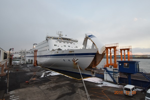 厳冬期に海面に現れる霧が太平洋沿岸を半分覆いつつあるところへ、丸い水平線に日が昇ってきました。 あたりは、マリンブルーからテキーラサンライズの階調へ変化していくわけです。 |