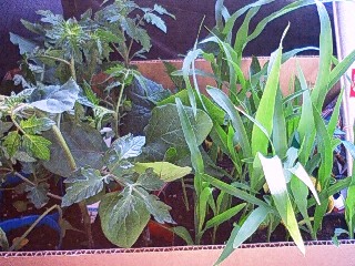 食料の備蓄だとおもっている、たまねぎ、じゃがいも。 夏ならば、とうもろこしが定番! ジャガイモは、まだ芽をださないけれど、追加で量産しています。 たまねぎは、そろそろ収穫時。良く乾燥させると、保存食になります。 |