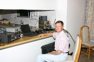 | My operating position. FT1000MP+HL1K. Such small amp is enough to keep pile ups busy. | Jun at operating position. |