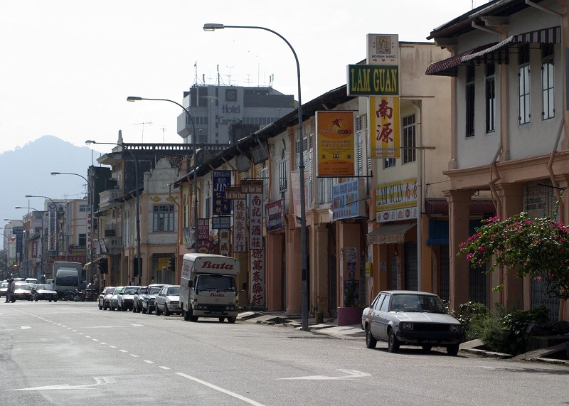 バツー・パハトの手前で丘陵地帯に入り、急に道が広がり片側2車線の立派な道路に変身します。町並みはジョホールと変わりありませんが、清潔できれいな感じです。さすがにジョホール州第二の都会だけあって車が多く、市街地はほとんど一方通行でした。良く間違わずに抜けられたなあ...。 |