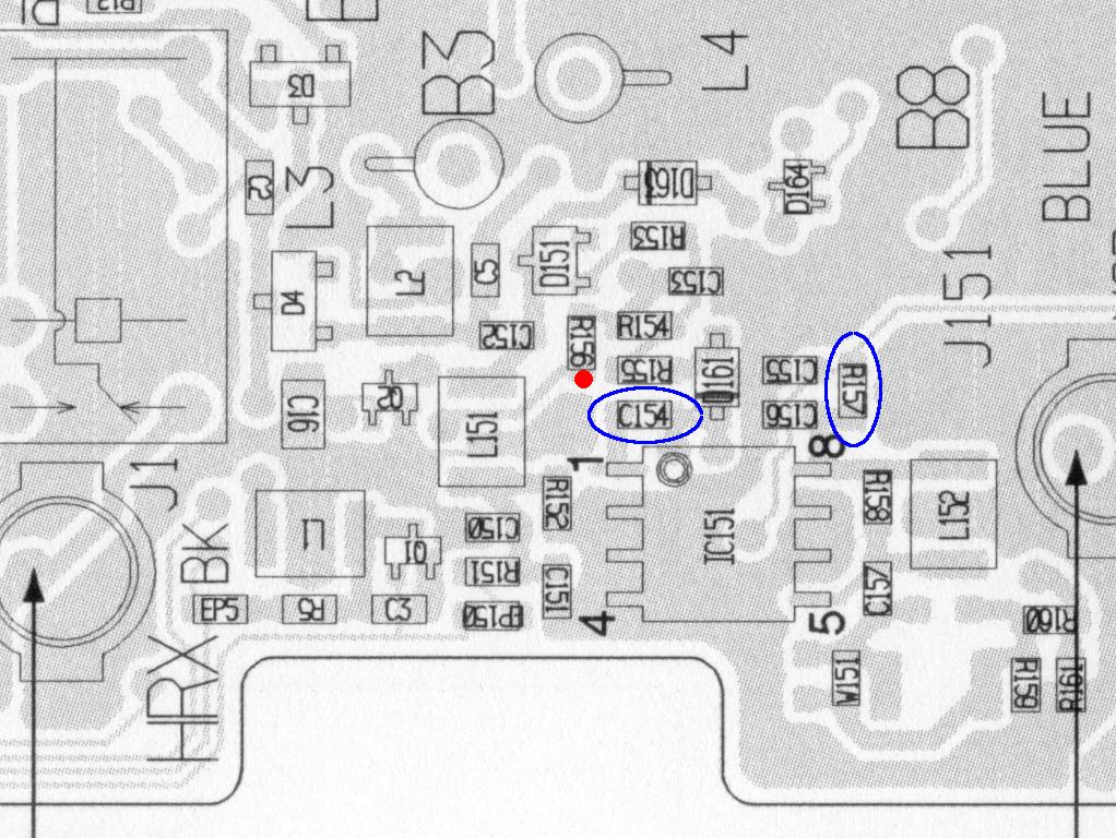 end of the RF Unit PCB. IC151 is at the back edge of
