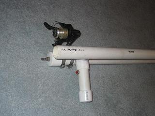 I mounted the fishing reel to the tank side of the launcher with hose clamps.