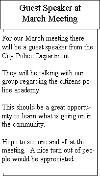 31. It would be P L tone all the time. Jim Wade WB8SIW was our guest speaker. His talk was on Emergency Communications. his presentation was very informative. Excellent Job. 50/50 was won by Tom N3VIX who donated back to the club. Tuesday night net controllers are. Feb. 15 Steve KB8YTC, Feb. 22 Joe KC8GTZ, Feb. 29 Roger WB8WJV, Mar. 7 Tom N3VIX. Motion to adjourn by Jerry KB8YTD seconded by Dick KC8API. 9:15 PM.
