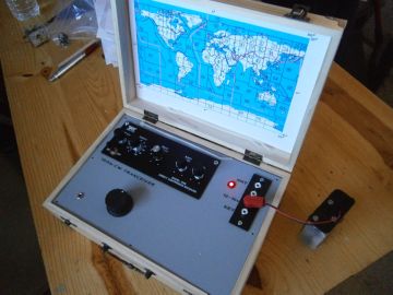 He also writes of a transceiver project he constructed shown below: "The photos show my little 49'er Chinese XCVR kit which I have recently installed into a re-purposed plastic box. I have made a few contacts with this rig using an end-fed sloping wire antenna about 50 feet long and about 15 feet above ground using a QRP MFJ tuner. It has 500mW out with 12 VDC in, despite what the 'manufacturer' states as being 3 W RF out. However, it did bag me my first 1000 miles per watt award (in fact � 1644 miles/watt). It is crystal controlled at 7.023 MHz with a 3 KHz VXO, but I wish I had had the foresight to have substituted the crystal frequency.�