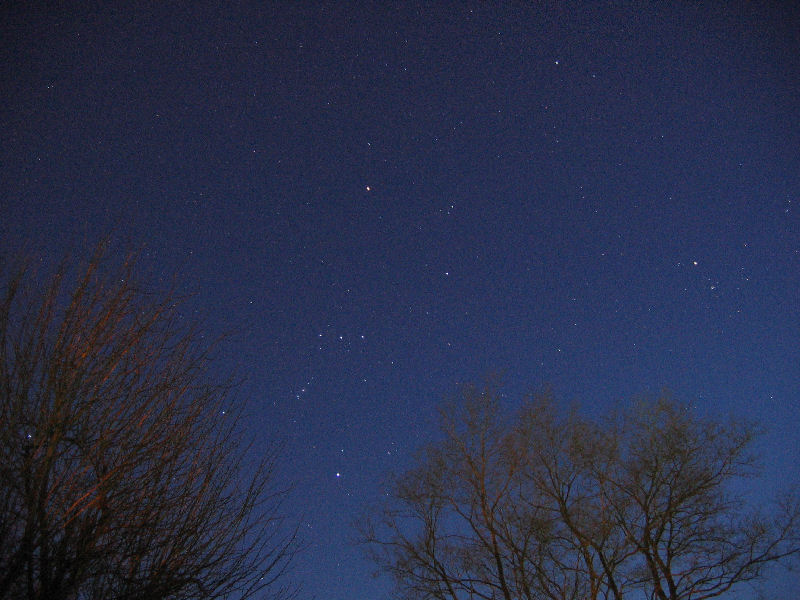 | This is an image of the night sky overhead at 9:41 p.m. on August 21. Click on the image to see numerous stars. |