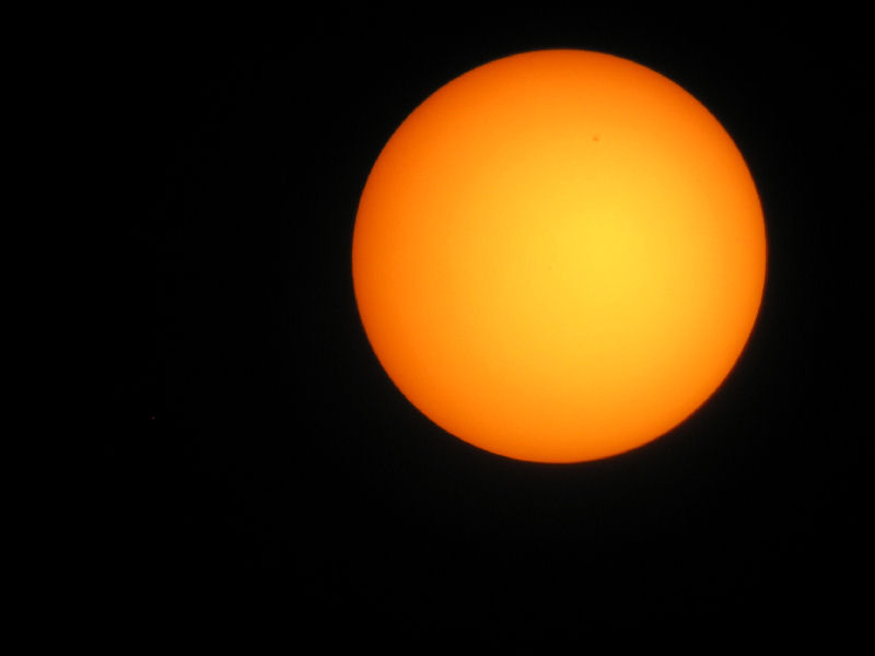 | This is the sun at 10:46 a.m. on September 2. Only one sunspot (located near the Sun's south pole) can be seen clearly. | Venus in daylight part 2. This is an image of Venus taken at 11:32 a.m. on September 7. The planet is on the other side of the Sun compared to where it was on March 14. The planet was also visible to the unaided eye. | Another view of Venus at 11:35 a.m. on September 7. |