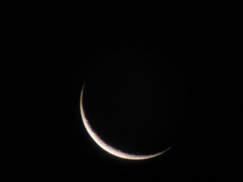 A two day old moon on April 10 almost two days to the hour after the partial eclipse. |