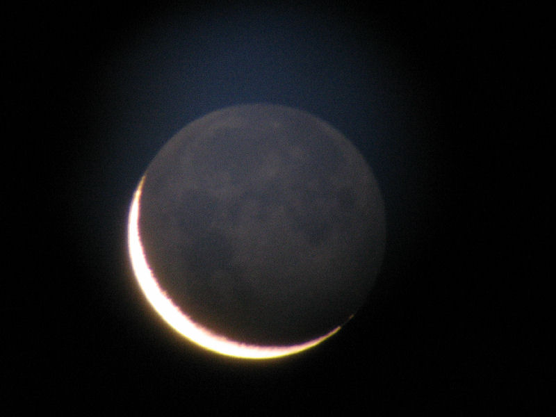 Earthshine (not moonshine) in all its glory. If you look closely, you can see a couple of the stars from the constellation Aries which is the constellation the moon was in at this time. |