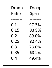 on each side of a dipole? ![]() Figure 3 Surprisingly, the answer is "No apparent change". Even though the physical depth of a droop becomes much smaller for the 6-Droop and 8-Droop antenna models, their radiation characteristics turned out to be virtually same. Really unexpected. Because of this visual commonality of the graphs for each of the 2-,4-,6- and 8-Droop Catenary Dipoles, the graphs were consolidated into the following three figures. ![]() Figure 4 In Figure 4 the Blue line for SWR as before, rises then falls to to a perfect 1:1 match around 0.30-0.32 ratio. The Red line shows the familiar, unrelenting decrease in dBi Gain for increasing ratios of sag. ![]() Figure 5 Figure 5 confirms that all Multi-Droop configurations have a 50 Ohm impedance around 0.30-0.32 sag ratio (Blue Line) and sag ratio has little effect on % Radiation Efficiency (Red Line). The single signigficant difference between the 2-,4-,6- and 8-Droop antennas is the length of wire needed. ![]() Figure 6 The Cantenary antenna models are based on finding the starting length of wire that, when bent, will resonate the same as a straight wire. As the depth of each droop and the number of droops increase, the % longer lengths of wire needed are summarized in the four curves of Figure 6 above. For example: To build a 6-Droop Catenary dipole for the 50 Ohm resonant frequency, you need to start with wire that is 10% Longer than the amount of wire that is resonant as a straight dipole... then divide it into six segments. In Figure 7, compare the 8-Droop Dipole Polar Graph and 3D flyover view with Figure 2. You can see that they are virtually identical indicatiing that the number of droops has no apparent bearing on radiation characteristics. 4NEC2 Antenna Model: Here ![]() Figure 7 Far Field Radiation Pattern, 8-Droop Dipole at Resonance Some practical points for building: Your target frequency has a bearing on the number of droops to decide upon. For HF more droops means more work but a more controllable, less wiggly, compact antenna. VHF can get along with 4 or 6 droops. UHF, attic or wind-free location, 2 or 4 droops could be considered. ![]() The length of a multi-catenary dipole controls the resonant frequency, so hold the length dimension and open the wire in the center enough to accomodate the coax connector or balun. Measure and mark the bend points for each droop before bending. Bend both sides of the antenna at the same time for uniformity. It is not at all critical to have sharp well-formed junctions between curves. It is not critical to try to form a catenary curve. An "S-shape is ok. For tuning, adjust the length of the dipole. This approach to shortening and tuning a dipole by multiple droops is an extemely tolerant method. Any reasonable approximation will work. Dick Reid, KK4OBI at QSL.net |