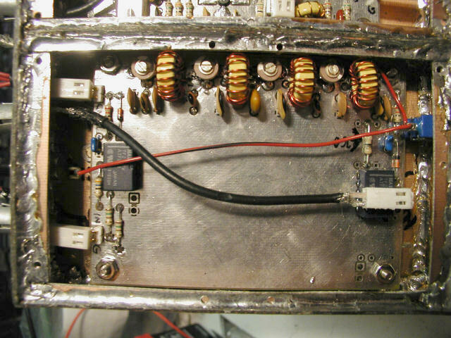 So far, I've only installed the basic 10MHz 300KHz-Resolution Bandpass Filter. This was probably the easiest board to build, although it took a little figuring out to make sure I had the relays in correctly. Also, I went ahead and installed a switch (on the front panel), but didn't label it until late in the project. It finally dawned on me, after two or three times of spending up to an hour trying to figure out what I had screwed up in the chain, that all I had done was set the narrow filter ON--even though there is no narrow filter--so no signal passed through the filter. Duh.