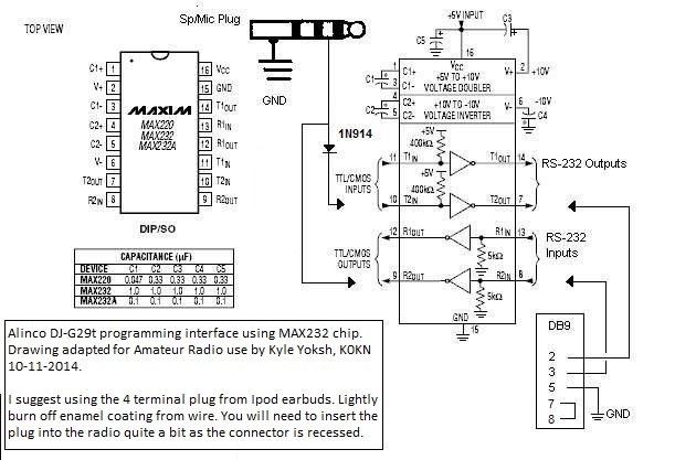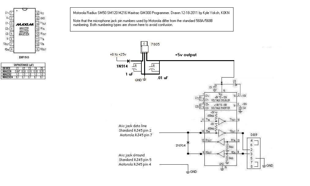 All of these radio programming cables use a level converter circuit, RS232 to/from TTL. The level converter