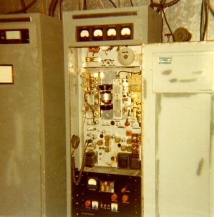 To the right of the receiver is a blower to cool the 44Ø Transmitter, and then the 44Ø transmitter. To the right of the 44Ø mhz transmitter is the 6 meter transmitter/exciter. In the Cabinet bottom is the 4-4ØØ 6 meter power amplifier and power supply. Needless to say you could hear the 6 meter signal about anywhere.