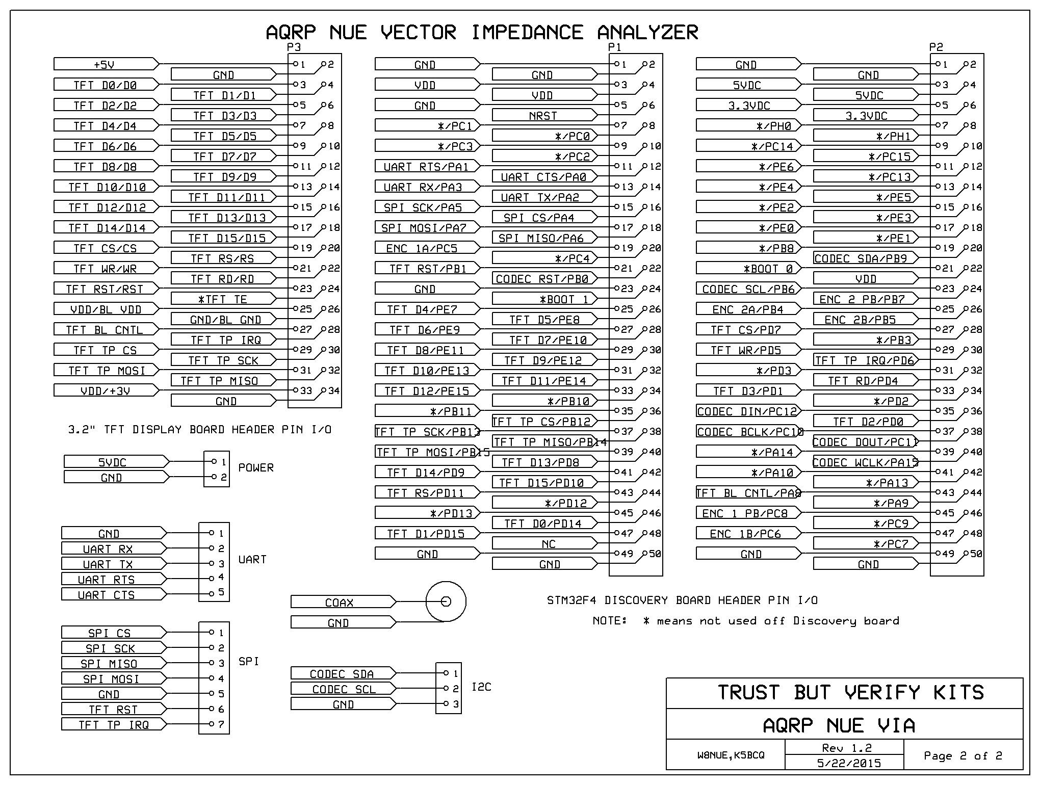 The inexpensive Si5351A proved to be ideal and we run two of the three outputs, separated by 2KHz, into dual Synchronous Detectors/Mixers (SA612As low noise, mixers). Harmonics and much of the potential adjacent interference signals are not a problem due to using Synchronous Detectors. The VIA works by making U2 a Current Detector and U3 a Voltage Detector. Measuring Current and Voltage (level and phase) provides all the imformation needed for the various S11/S22 parameter measurements. Device Under Test (DUT) connector impedance 0f 50 ohms is not required because both Current and Voltage (and phase) are being measured. The two baseband signals are fed into a great little CODEC we've used on several projects with good luck. The digital info is sent to the STM32F407 microcontroller for processing, storage, and display. We haven't decided what to do with the third RF output from the Si5351A).