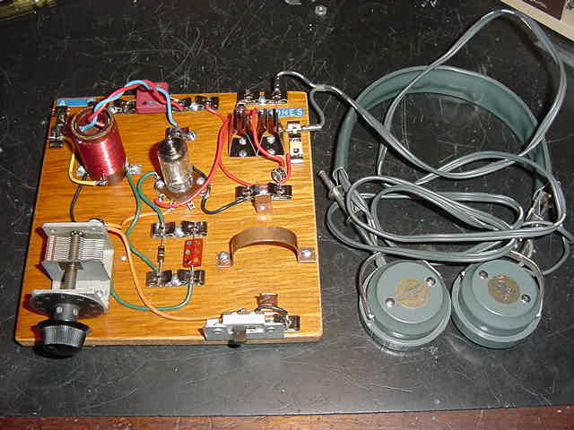 Mine has been wound to cover the top end of the BCB up to 80m. Found a 8:1 vernier 360pf variable capacitor in the junk box, so I used that. The 22-1/2V battery is replaced by two 9V batteries which works just fine. "High" impedance headphones vary quite a bit and you NEED a set which measures 2000 ohms DC resistance or higher, anything less works poorly. The headphones ARE the plate load and the military H-32/U headset, at 3000 ohms, works well. In fact, "poor headphones" was the only problem I had with my receiver back in 1955 until a neighbor (Dan Weiser ...worked for GE?) came over with a higher impedance set.