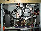 Back cover removed showing the power supplies upper deck and the original Dayton 2C915A (220vac -- 140cfm blower) mounted to the underside of the cabinet. The RF deck enclosure was removed. |