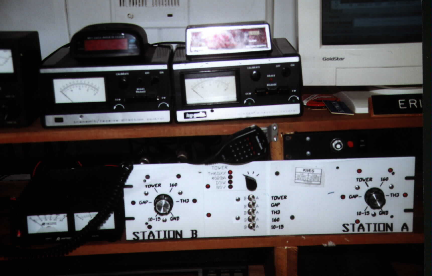 | My station consisted of a borrowed IC-765 (from AD4ES), driving a Tentec Centurion KW Amp. I had a switch panel that accesses all antennas to 2 positions. I used Writelog Version 10 software to integrate the equipment. I also used a Timewave 599 DSP filter, and an MFJ Contest Keyer equipment. My 2 Meter packet station runs Packet-Cluster to KC4HW (144.97), and I have a 2 Meter FM station with the HTX242 and J-Pole at 105 feet. |