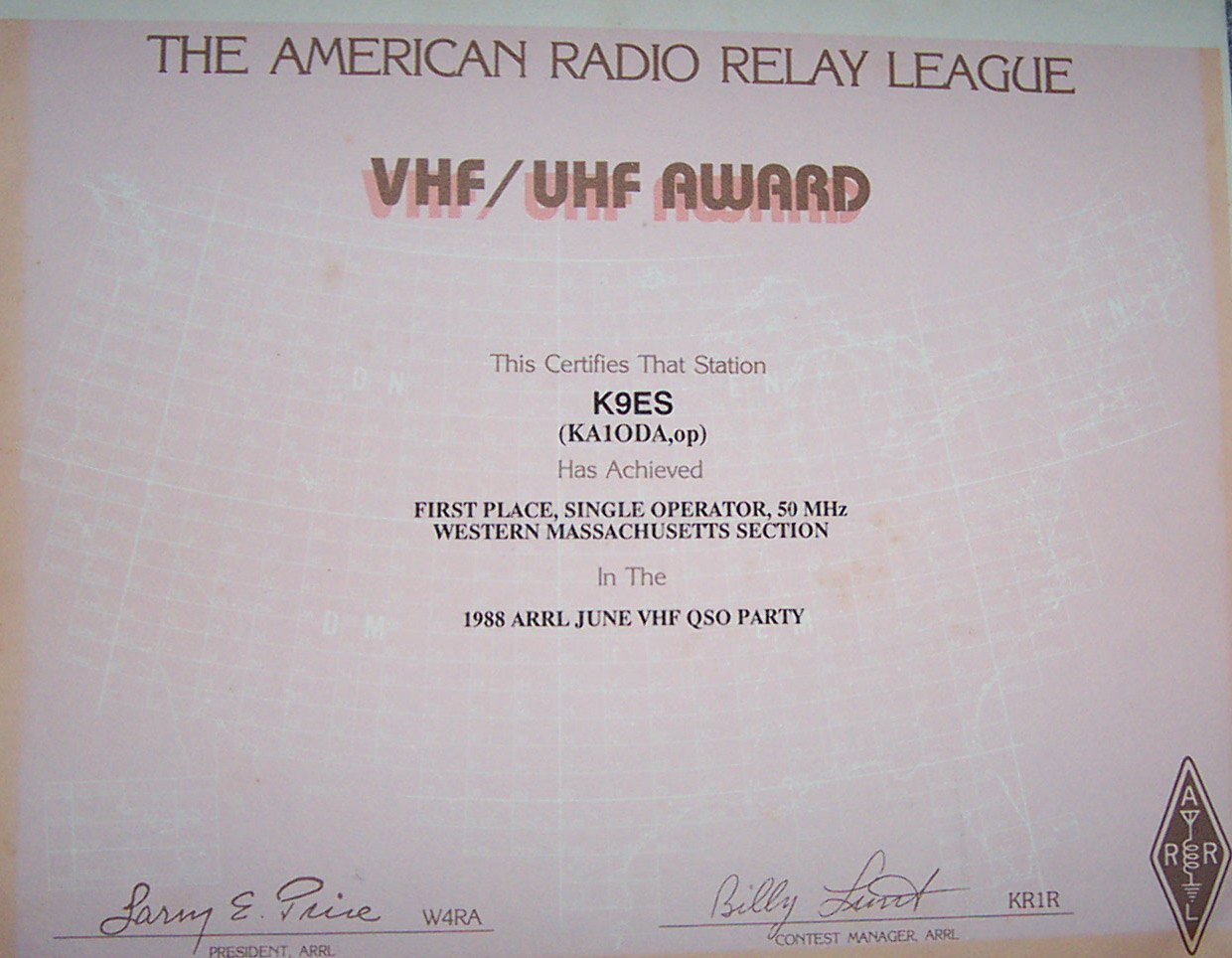 I really started out in ham radio operating VHF with Heathkit Two'er and Heathkit Six'er radios. The Germantown Radio Club had a fantastic VHF contest station. These were special bands... Over the years, I continued activity on them, and continued operating VHF contests. Here are some of the results... |