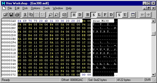 In the GM300.MDF file make a Checksum-16 of the whole file (the F12 option in Hex Workshop), in our case we ended up with 0x5D53 (RSS V 05.00), write this down, you might need it later.