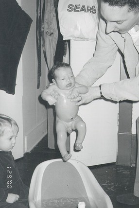 Thibedeau, holding Johnny a few days after he was born. |