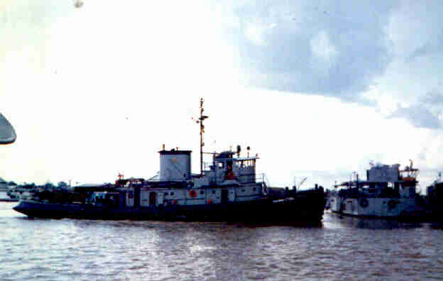 My second tour in Viet Nam, I was Captain on two different Tugs both 110 ft, one LT 1957 was stationed in Cam Ranh Bay, its duty was assisting Merchant vessel docking, and moving barges, and heavy barges cranes around the bay. The LT 1972 was stationed in Saigon, its duty was the same, did also tow barges in the rivers.