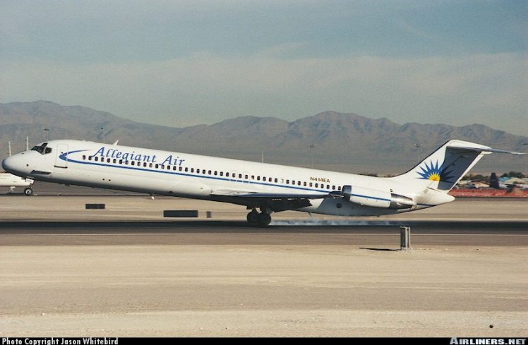 The same DC9-30 repainted in Allegiant Airlines colors.