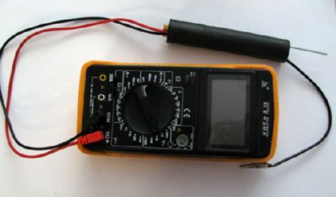 Built using 2n2222a transistor and a coil wound on a plastic jump rope handle