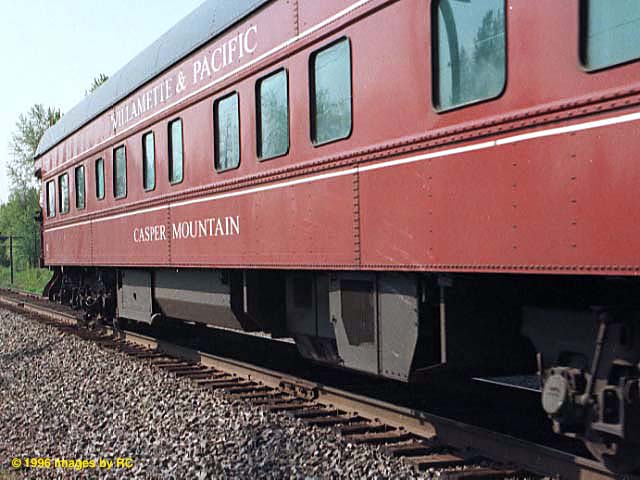 The Southern Pacific, (engine 4449, "Daylight"), pulling vintage cars, goes rumbling thru the city of Everett, Washington on it's way from Portland, Oregon, to Vancouver, B.C., Canada, on May 10th, 1996.