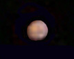 | I was looking back through the August 18 Mars webcam video and found this frame that I believe I have used before. It's the best frame that I've seen so far. I got rid of some of the blur and sharpened it in Adobe Photoshop. You can see the southern ice cap. You can also see what appear to be clouds and haze along the right side of the planet. | This is what Mars looks like at low magnification. Mars is small...only about twice the size of the moon. Even when Mars and Earth are very close together, the planet still appears small in a backyard scope. | Another view of Mars. This picture was specially processed to show the rusty color of the planet. |