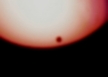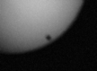 | B and W version of the previous photo. | Venus transit. Time: 6:00 a.m. 6/8/04. Image saturation and brightness adjusted. | Venus transit. Time: 6:01 a.m. 6/8/04. Lens: 9.7 mm (more power than previous images) |