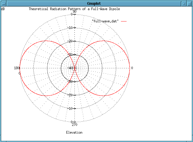 The second plot shows the theoretical radiation pattern of a full-wavelength radiator. The 3dB beamwidth is 47.8 degrees.