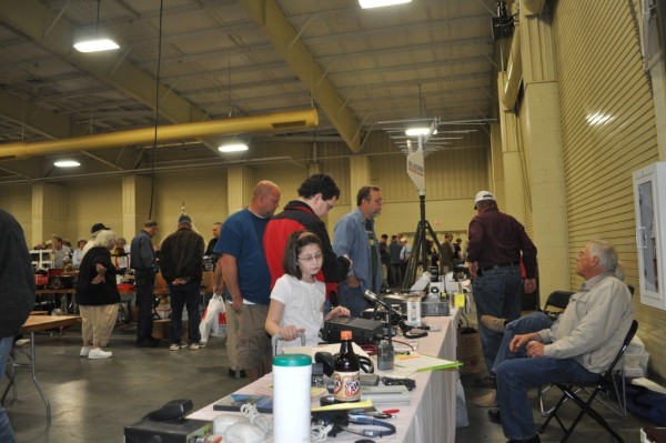 Mollie, Lee (W4ALZ)daughter looking over the ham gear.