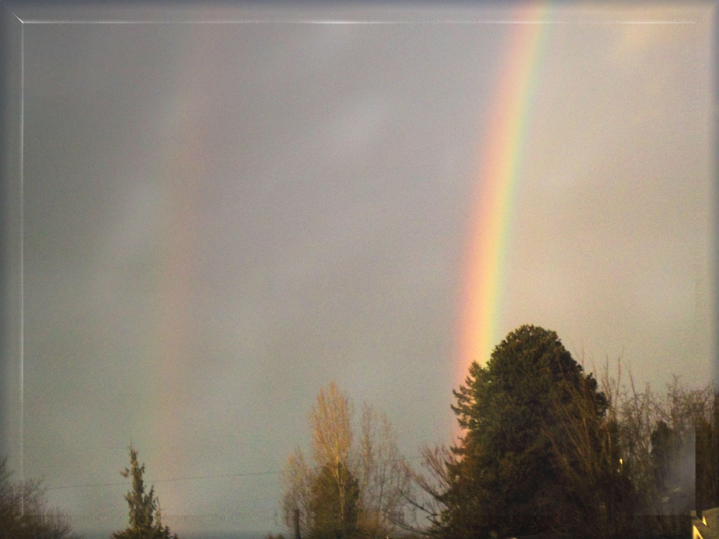 Pictures of one of the most beautiful rainbows I've ever seen after a really bad rain-wind stormhere in Tacoma, WA. USA.Pictures were enhanced using photo-shop and eye-candy gloss filtering arrayto bring out that special beautiful features in the pictures.