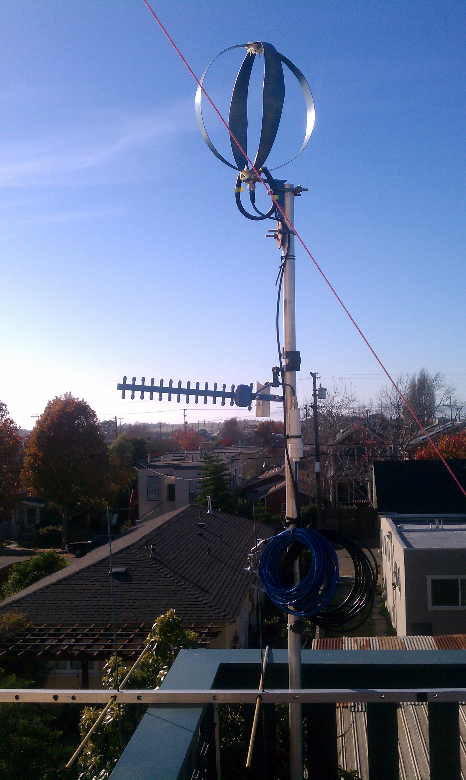 ~ 2.3-2.7ghz Bullet hp2 in Configuration befor being placed on top of the QTH in west Berkeley, All so pictured a 2m/70cm EggBeater Antenna ~