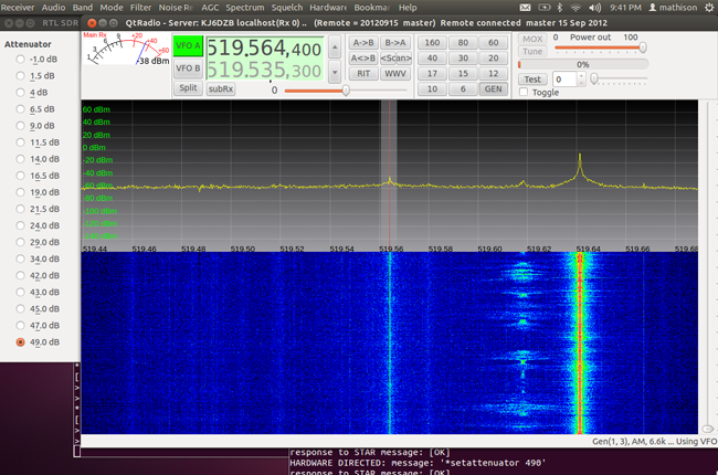 DVT dongle attatched to a Ghpsdr3 server, Qtradio windows client.