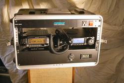 on a table, pop the front and back, hookup power and antenna and you are good to go. Originally I had planned to have batteries in the case but decided against it because: (1) So far in every instance I have been deployed we had AC or DC power available; (2) If I need to run off external batteries the case is wired so that I can plug in my battery pack or even clip to a car battery; and (3) No battery means less weight. The blank space at the left contains wiring for my Yaesu FT 100D if I need to go HF. My case