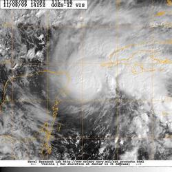 Category 1 Hurricane Ida, just before entering the Gulf of Mexico this past weekend. [Image courtesy of the Naval Research Lab] |