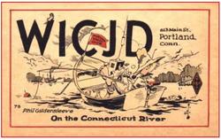 But Gil also used his cartoons to teach proper on-the-air behavior. In March 1938, he drew an eight panel cartoon of a man calling CQ on CW. Each panel had the man getting older, where by the seventh panel, he was old, bald and with a long beard, spider webs all around. The last panel showed a tombstone that read "Here lies C. Q. McGall. He died without even signing his call." The next month, Gil drew a single panel cartoon with a line separating the panel into two parts. In the first part, he showed a radio amateur "all worn to a frazzle" from handling so much traffic, as well as dealing with QRM. The second half showed two amateurs handling traffic as a team, "all full of vim and vigor." Gil's point was spot-on: "Cooperative operating does a better job with greater efficiency all around. Instead of harassed, inefficient, overworked operators, put key stations on a 6 or 8 hour basis, with relief and second operators for efficiency during intensive operation." Gil's interests were not limited to ham radio. A native of Portland, Connecticut, he began working for the Middletown (CT) Press as the Portland correspondent in 1940, became county editor in 1943 then city editor in 1945. Sometime later, he was named news editor. His cartoons also decorated the Press and various trade journals. He served in the volunteer fire company and was captain of Fire Company No 2 for nine years, as a member of the Portland Board of Education for eight years, and as a vestryman in his local church.