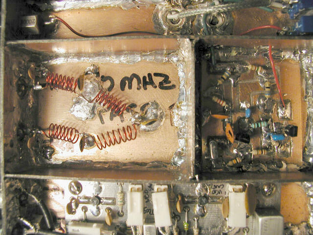 This is a little bit closer shot of the 70MHz Low Pass Filter and the 10MHz crystal calibrator oscillator.