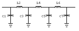 The second example shows design of a low-pass filter, such as used for TVI suppression.. An attenuation of 30 dB is specified at 54 MHz, while a loss of 1 dB is specified at 28 MHz. This filter would require 7 elements, and its response over 5 to 55 MHz is shown in the table.