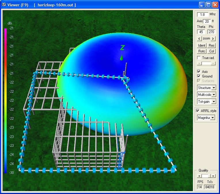 Computer Assisted Low Profile Antenna Modeling IIComputer Design of a Low Profile Horizontal Loop Antenna for a Limited Space Backyardby Dr. Carol F. Milazzo, KP4MD (posted 25 September 2010, updated 18 Feb 2018)E-mail: [email protected] SUMMARYThis article describes the application of computerized modeling to design and analyze the performance of a low cost, low profile horizontal loop antenna that exhibits gain over a dipole within a limited space backyard using household materials and low cost speaker wire zip cord as the transmission line.INTRODUCTIONI first experimented with antenna modeling in 19971 when I moved to a residential housing development where restrictive covenants did not permit outdoor antennas. The space available for antennas at that time was inside a peaked roof attic. In 2006, I moved to a mobile home park with covenants that restricted antennas visible from the street. My first antenna at this location was a remotely tuned base loaded 6 foot vertical whip antenna (High Sierra Sidekick) mounted on the roof at the rear of the home. The aluminum siding served as its counterpoise. Its observed performance was fair on 21 and 28 MHz, mediocre on 7 and 14 MHz with little reception except to the north, and overall quite poor on 3.5 MHz. Seeking better performance on the lower frequencies, I later installed a 100 foot end-fed random wire antenna of 20 gauge insulated stranded wire supported by two 15 foot PVC poles at the south corners of the property. That antenna performed marginally for contacts within 200-300 miles on 1.8 and 3.5 MHz but quite poorly on the higher frequency bands. Additionally, it was highly susceptible to local radio frequency noise conducted from cheap electronics into the house wiring and radiated strong radio frequency fields within the home's living space that caused erratic operation of equipment and appliances. Recently, I decided to analyze the performance of these