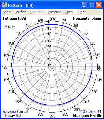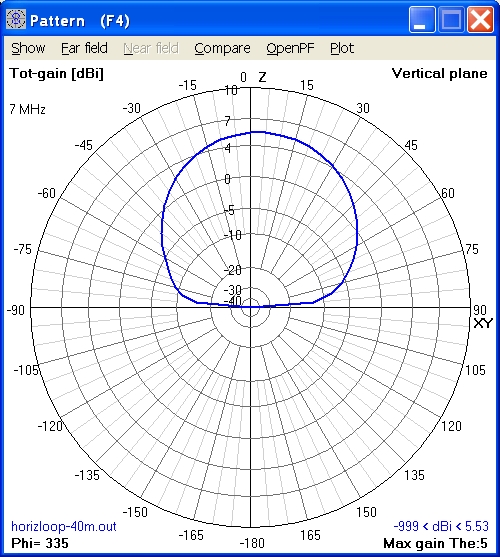 On 7 MHz, the loop antenna offered omnidirectionality with mostly high angle radiation, 5.5 dB more maximum gain and over double the radiation efficiency of the vertical antenna, and 10 dB more maximum gain and 10 times the radiation efficiency of the random wire antenna.. On 14 MHz, compared to the other antennas the loop antenna offered near omnidirectionality, low angle of radiation, up to 3.3 dB more maximum gain and up to twice the radiation efficiency.