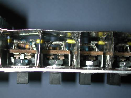 Below are the internal views of the step attenuator, prior to soldering the tin sides on the internal assembly. Click to enlarge.